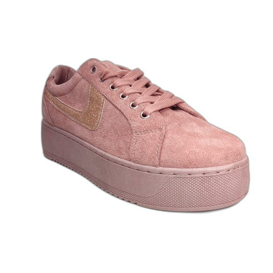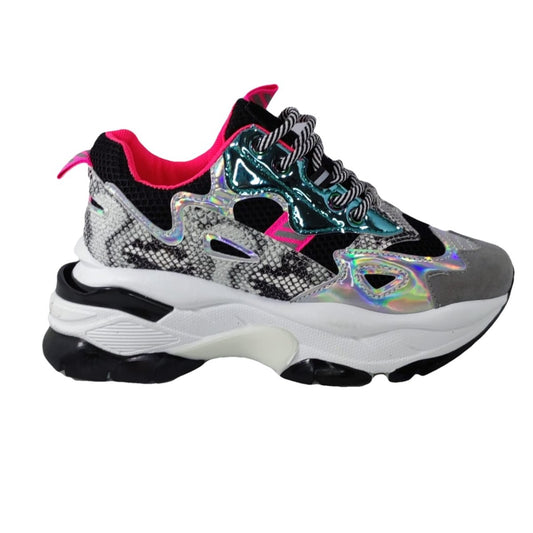 Zapatilla Plataforma Mujer Plateada Rosa Celeste