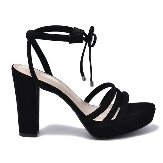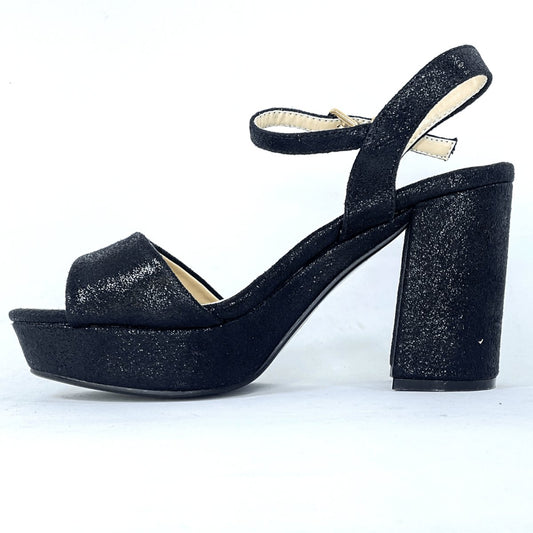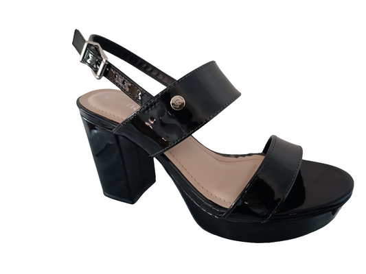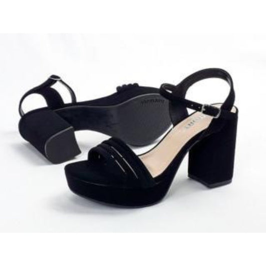 Sandalia taco alto Plataforma Negro Gamuza Brillo